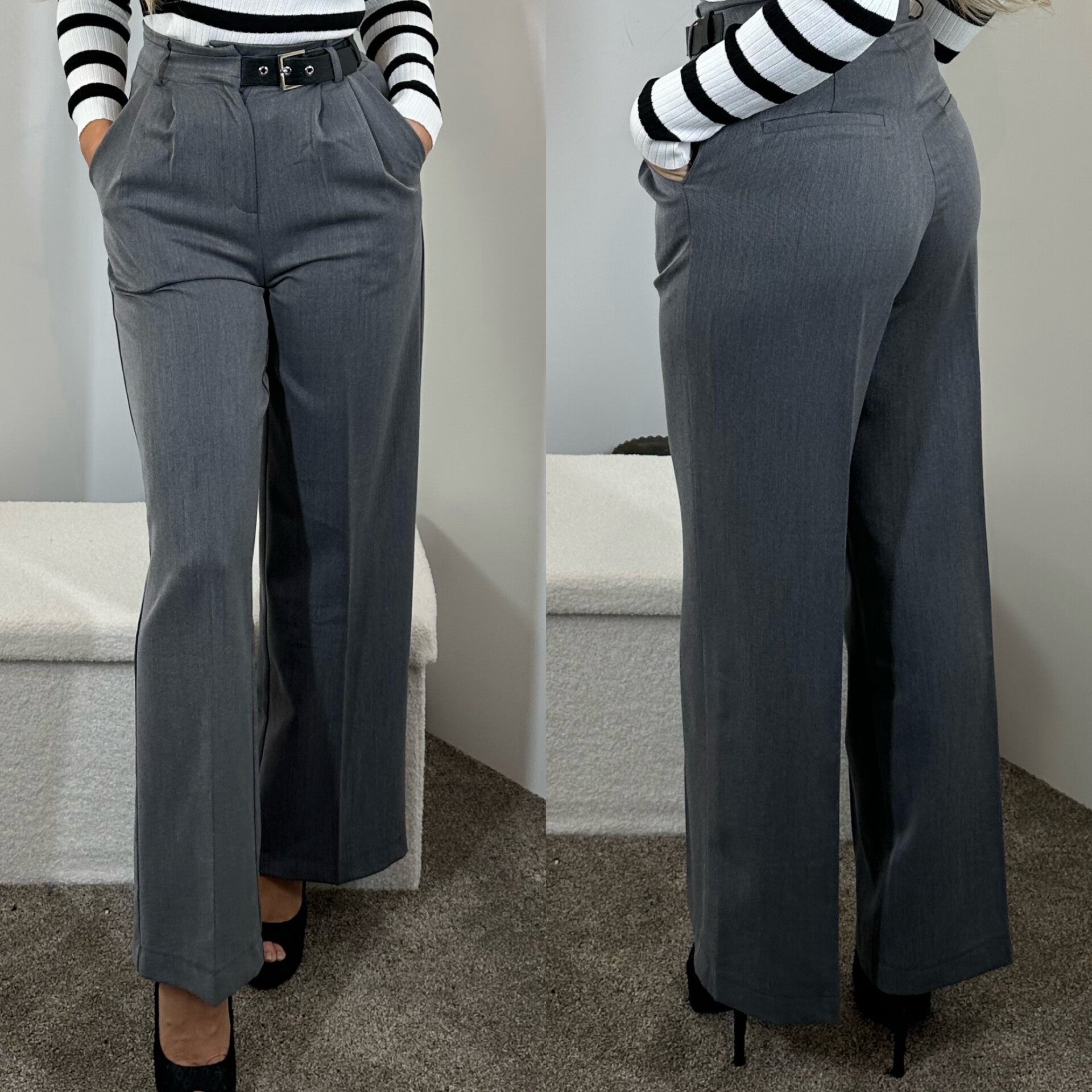 mooie hoge broek met een klein leder riempje en brede pijpen,model draagt hier de maat s en is 1.65