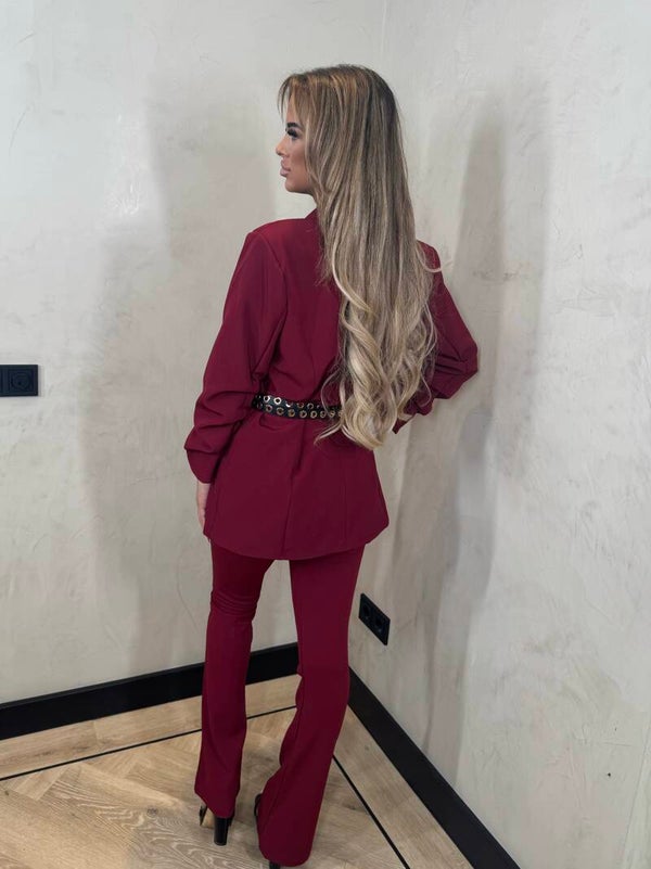 De broek heeft veel strecht en is een flair model met nepzakken. De broek sluit d.m.v. met een rits.