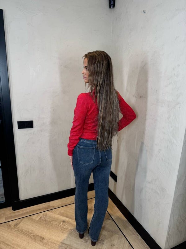 Gedetailleerd met lange mouwen en een col en natuurlijk glitters.