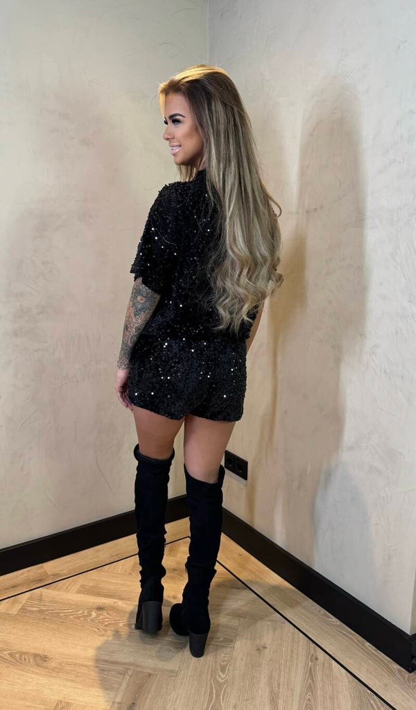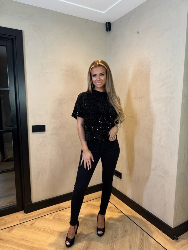 Het topje heeft een all-over pailletten print, heeft is een heel fijn stofje!