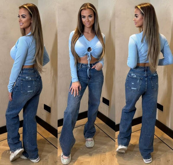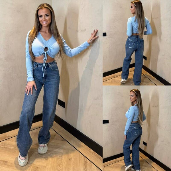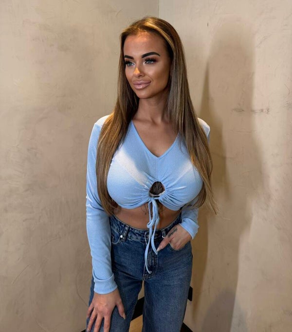 Het is een korte cropped top met lange mouwen en gedetailleerd met veter die je kan aantrekken.