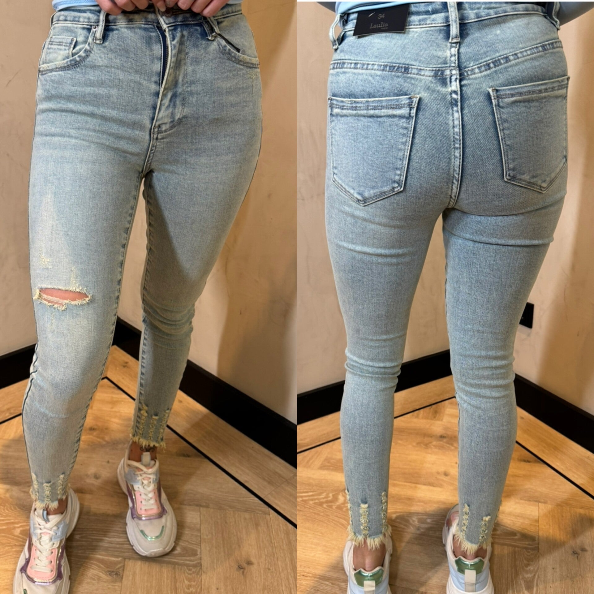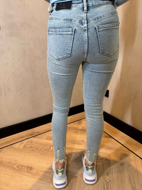 Laulia cropped light blue dirty wash skinny jeans 366-23