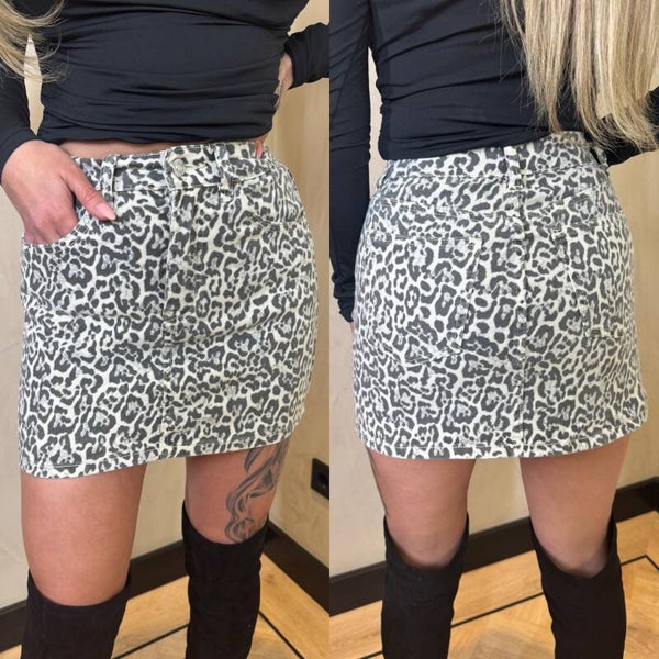 PRINT LOVE! De leopard print is nog steeds hot! Hoe leuk is dit nieuwe denim rokje voor jouw garderobe. Her rokje is van een stevige denim stof. Combineer met het bijpassende items voor een complete look.... Het valt op maat en is een mid waist. Sluit d.m.v.rits en knopje. Gedetailleerd met zakken.