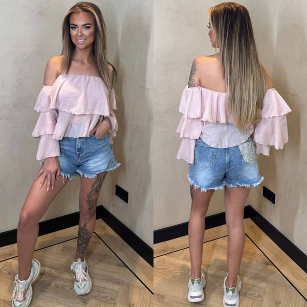 Noël off shoulder top roezel roze