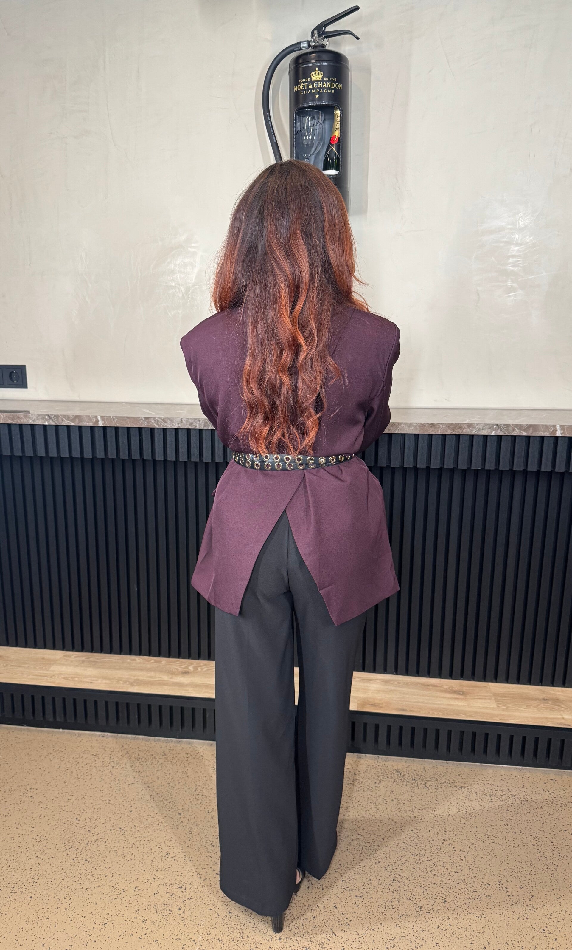 Hoe gaaf is deze blazer! De blazer is gedetailleerd met knopen en een split op de rug. De split kan zo ver open als je wilt. Leuk om zo te dragen als blazer of met een riempje! Zie de foto. De blazer sluit d.m.v. met knopen.