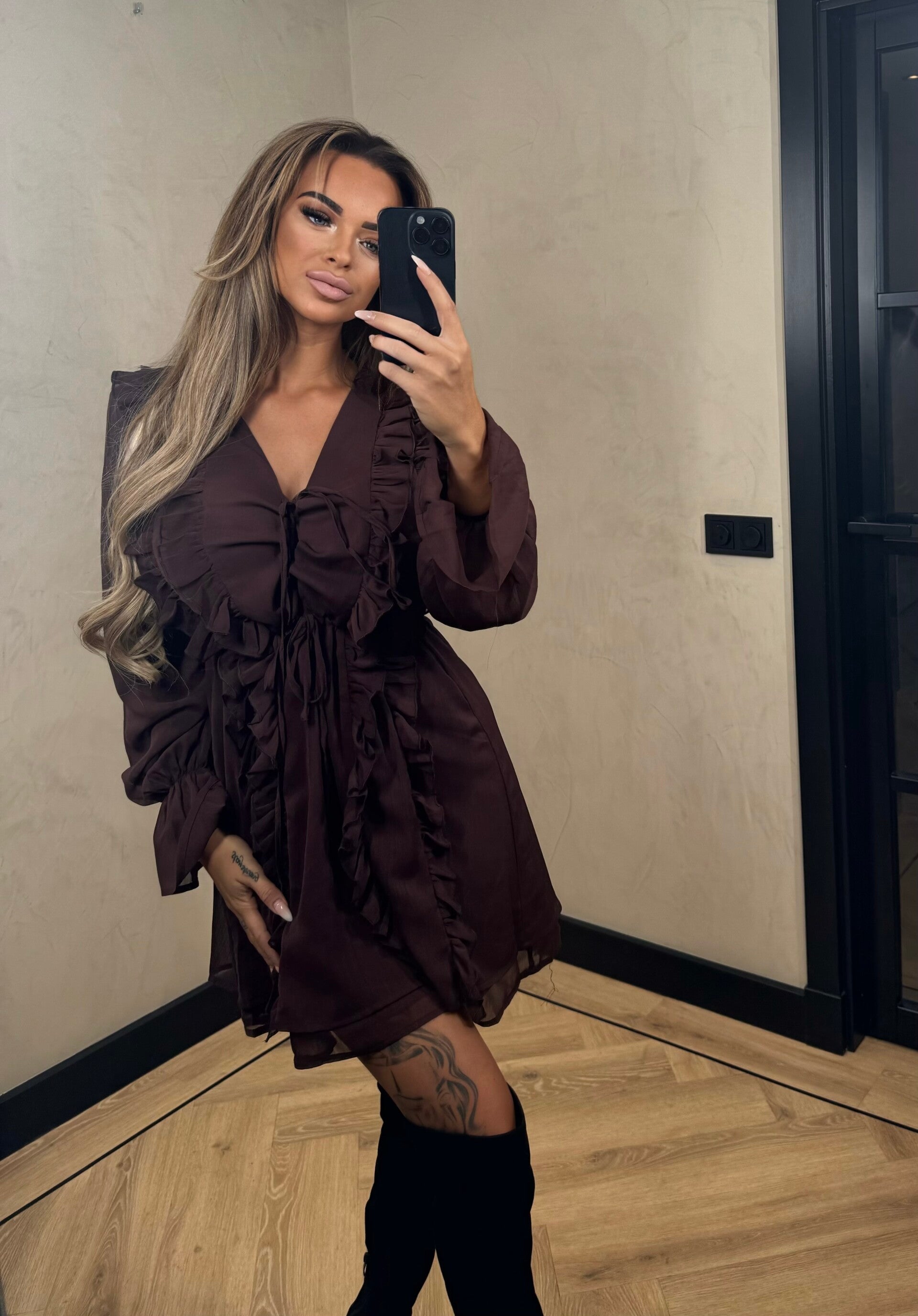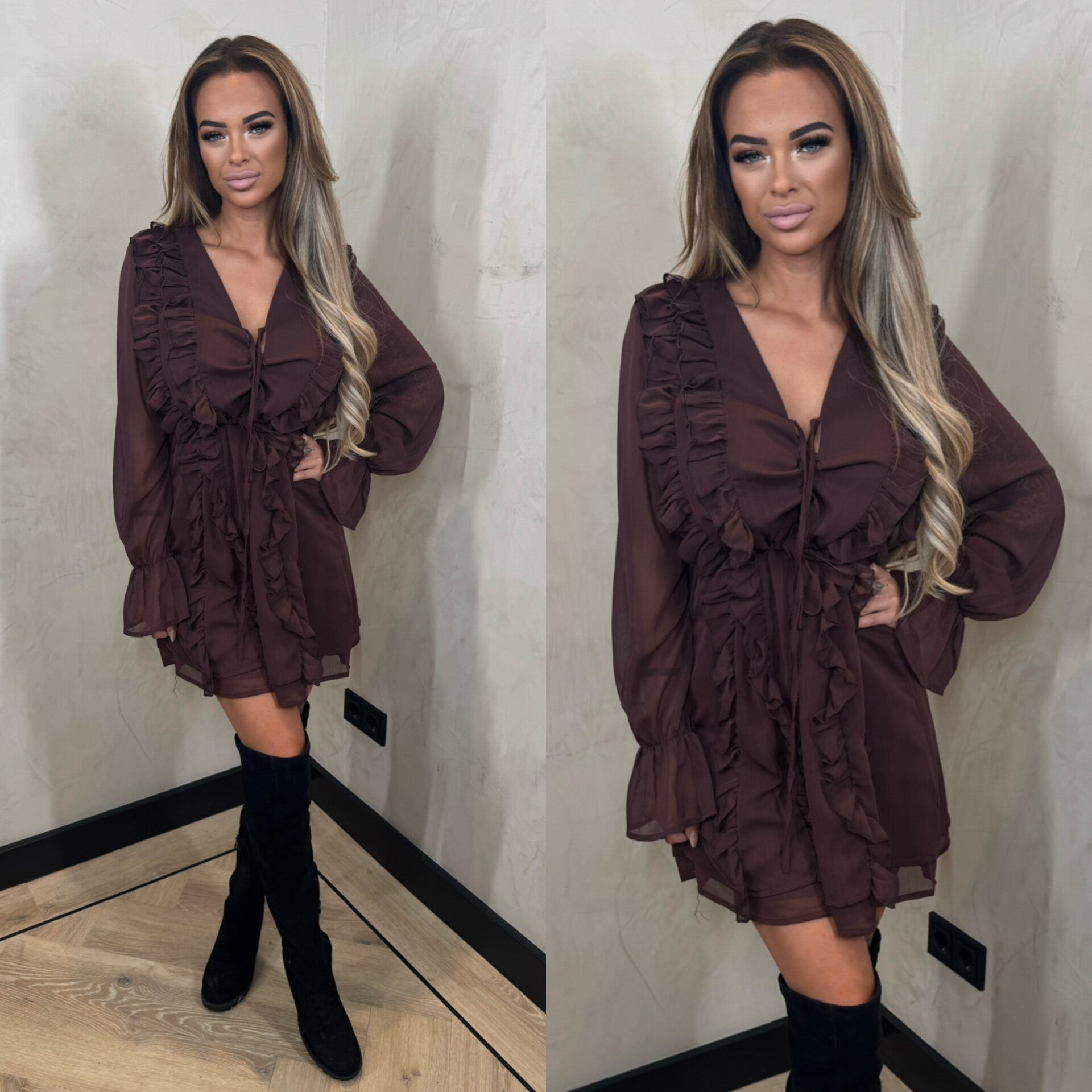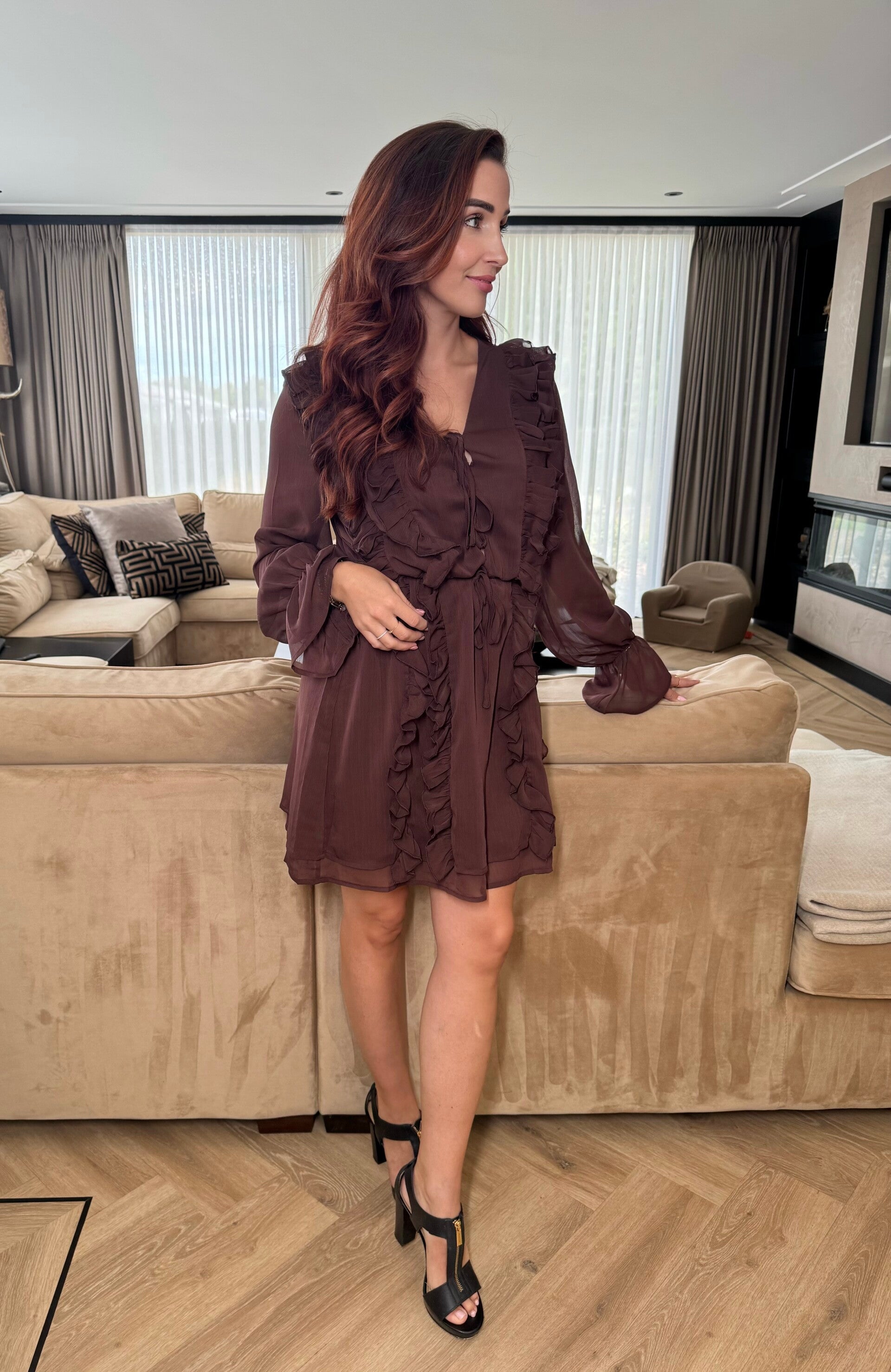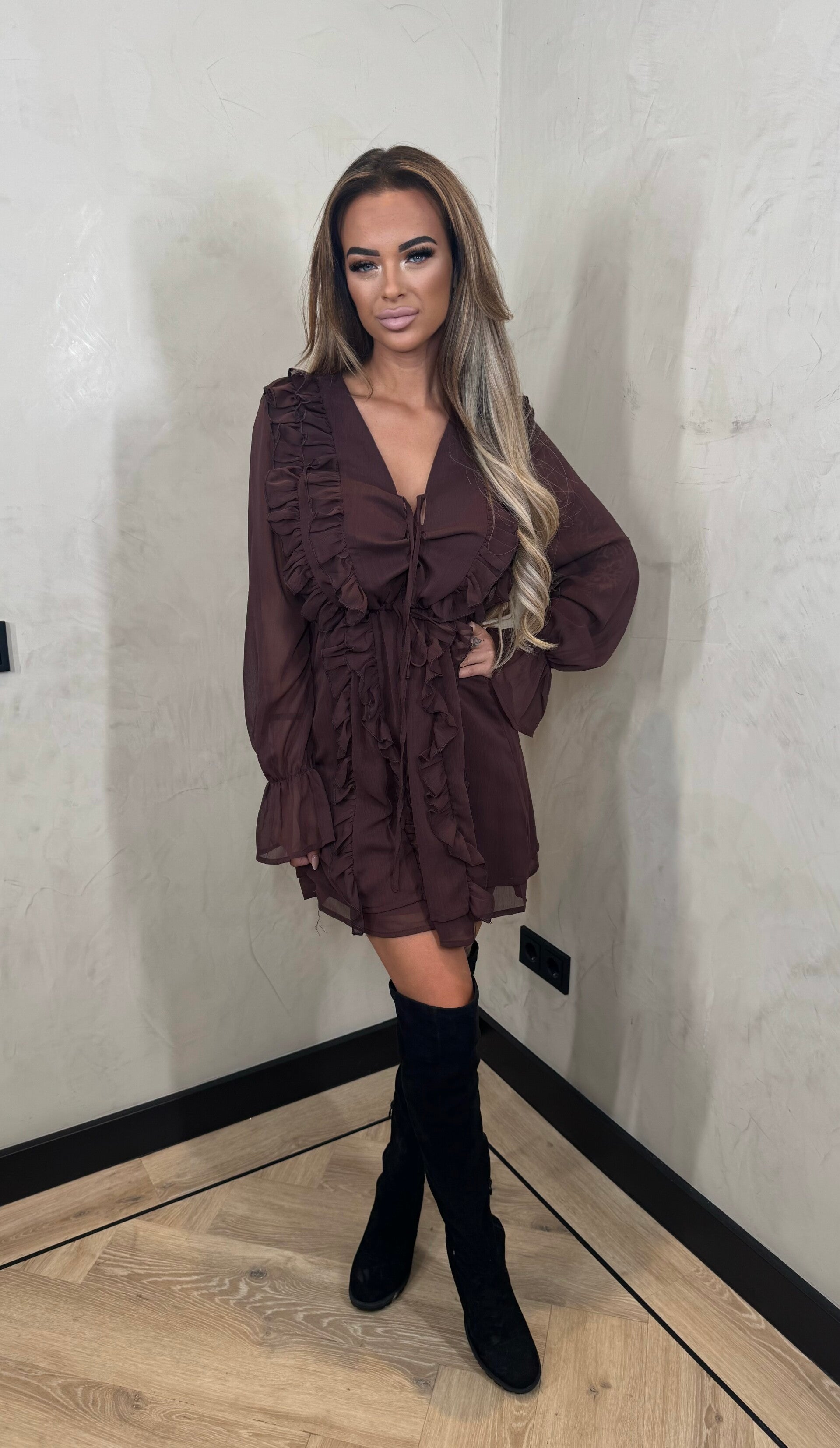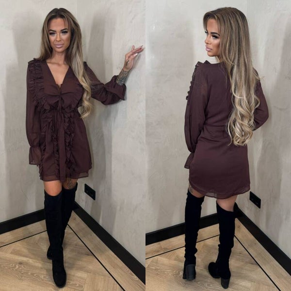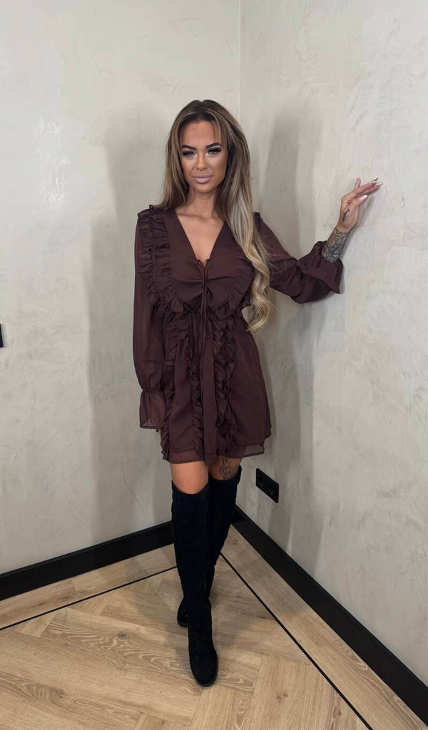 Charlotte ruffle dresses chocolade 14-1495