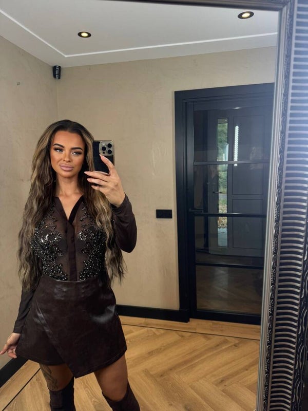 Gedetailleerd met een ronde hals en lange mouwen en allover gedetailleerd met parels en pailletten.