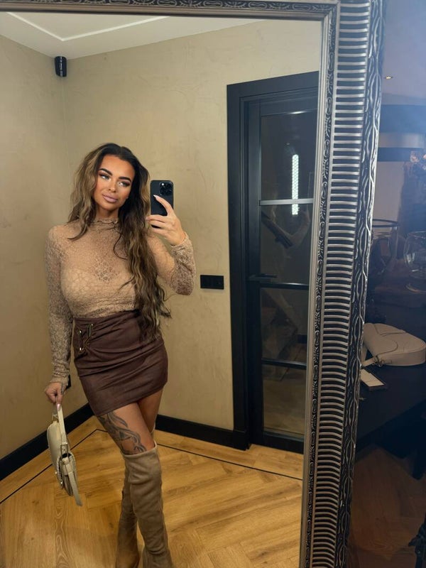 Het rokje sluit goed aan en is van een suede stof en is gedetailleerd met een bijpassende goude broche eraan vast. Er zit een stretchband in de het rokje. De rokjes vallen op maat.